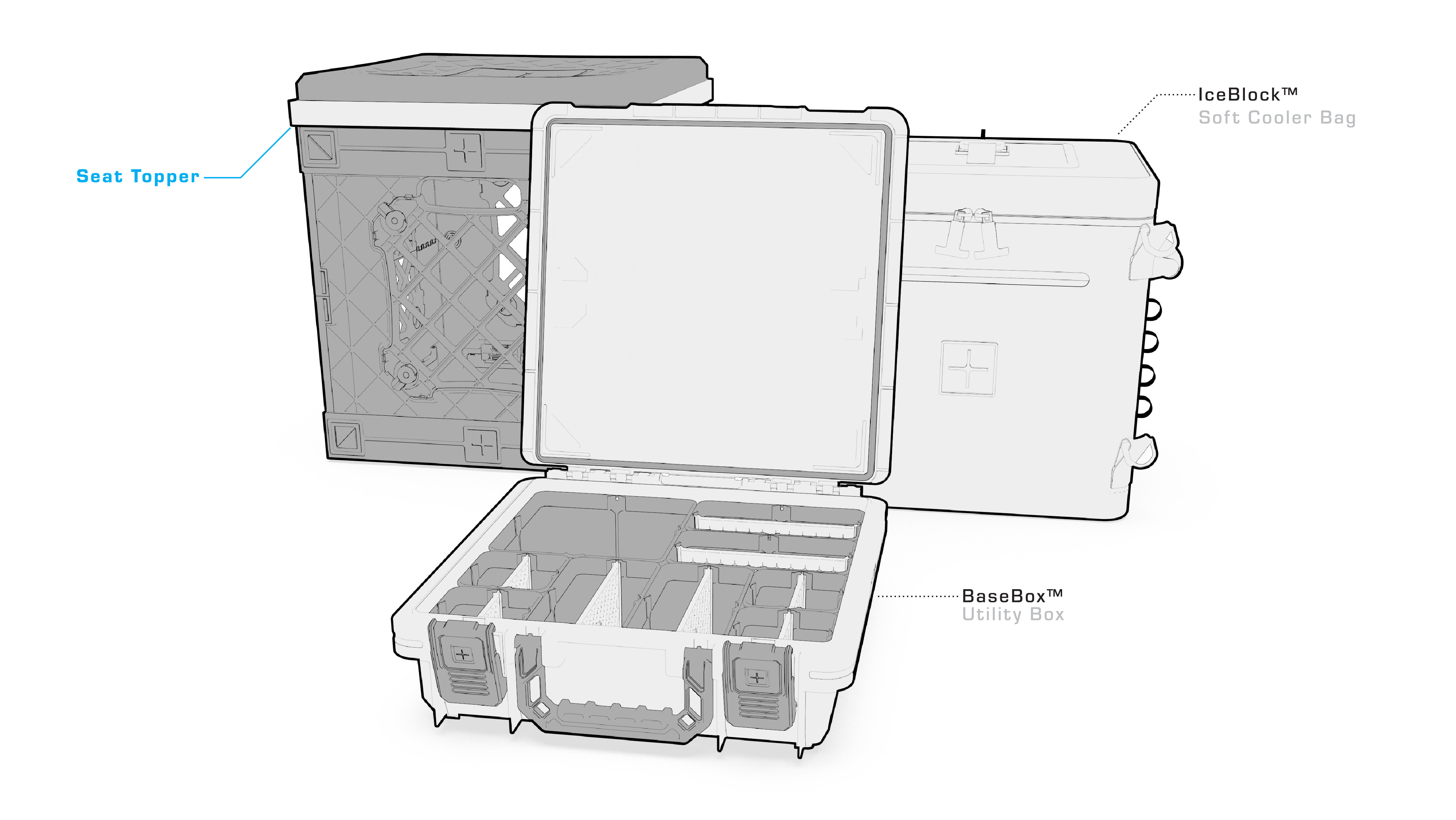Our patented 1/4 Turn and Snap-Fit systems lets you quickly attach accessories to your Crate, offering endless modular setup possibilites.