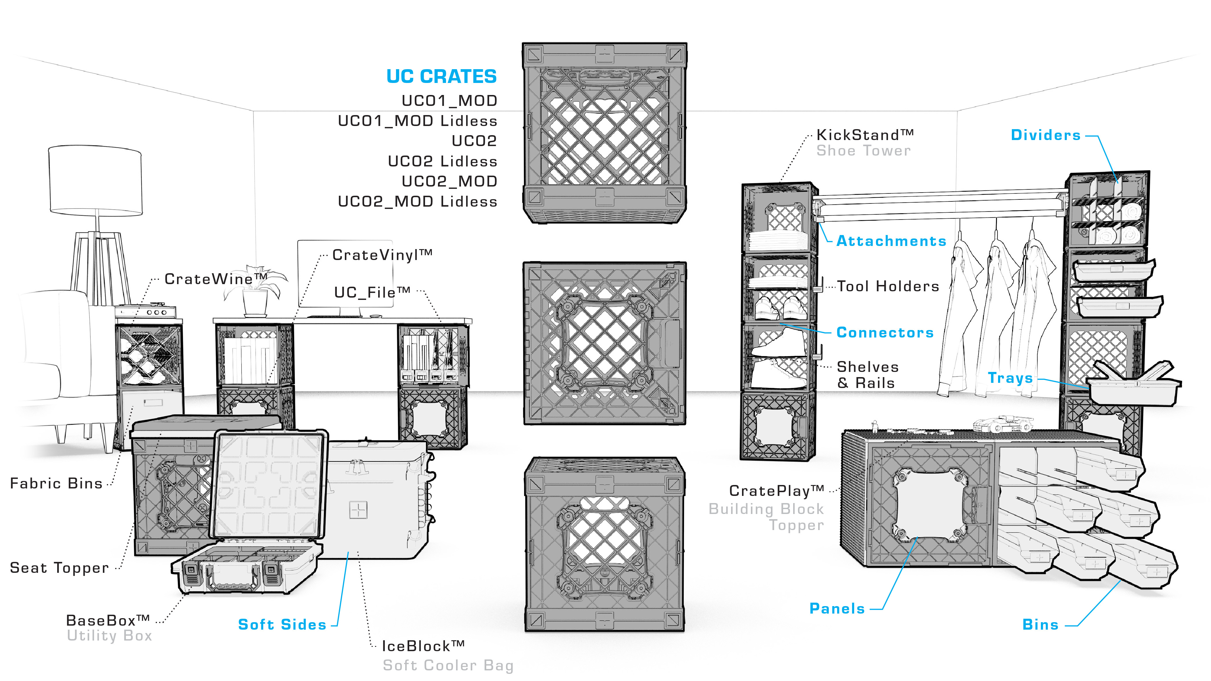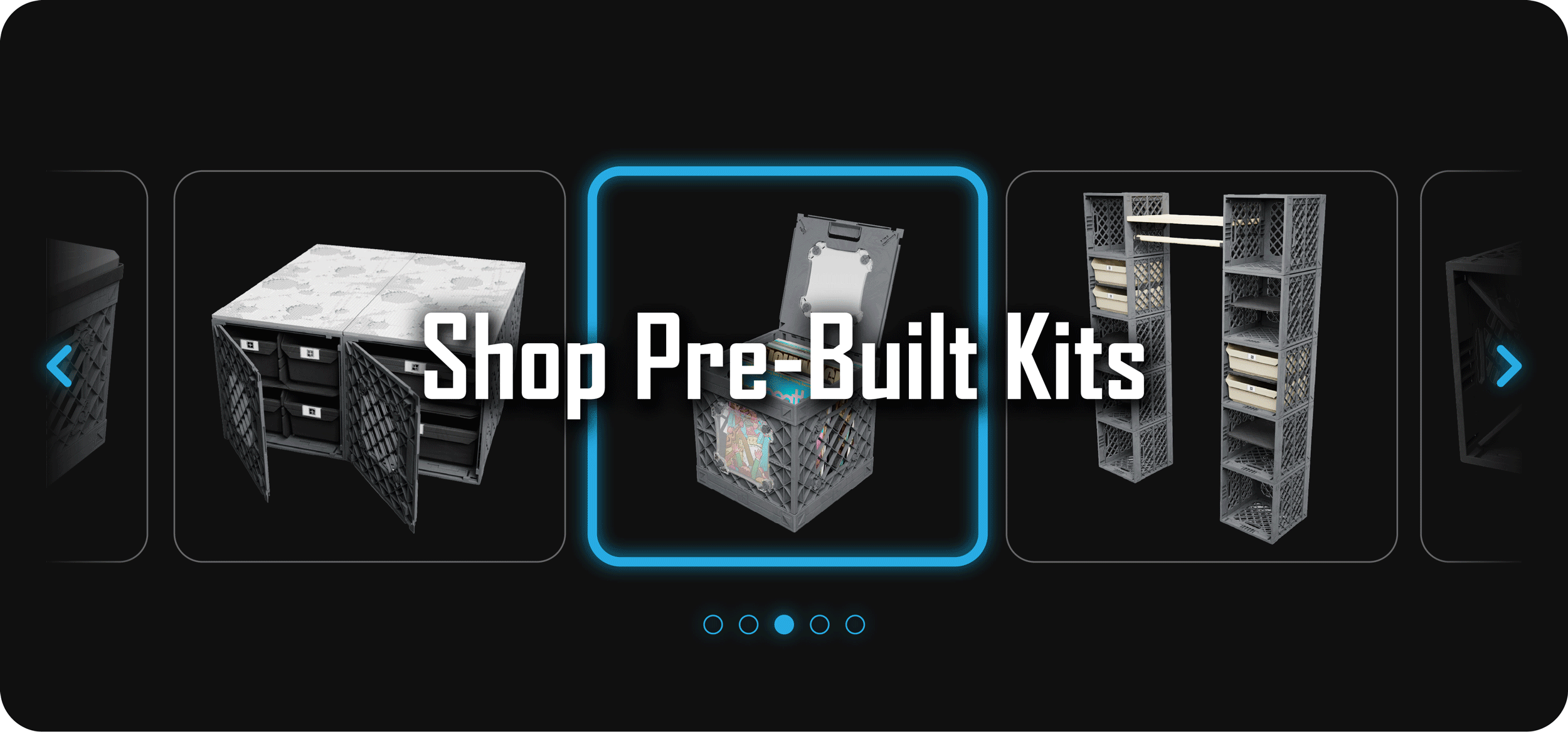 Mix and match CrateRails™, CrateFins™, Dividers, and Shelves to organize your crate your way.
