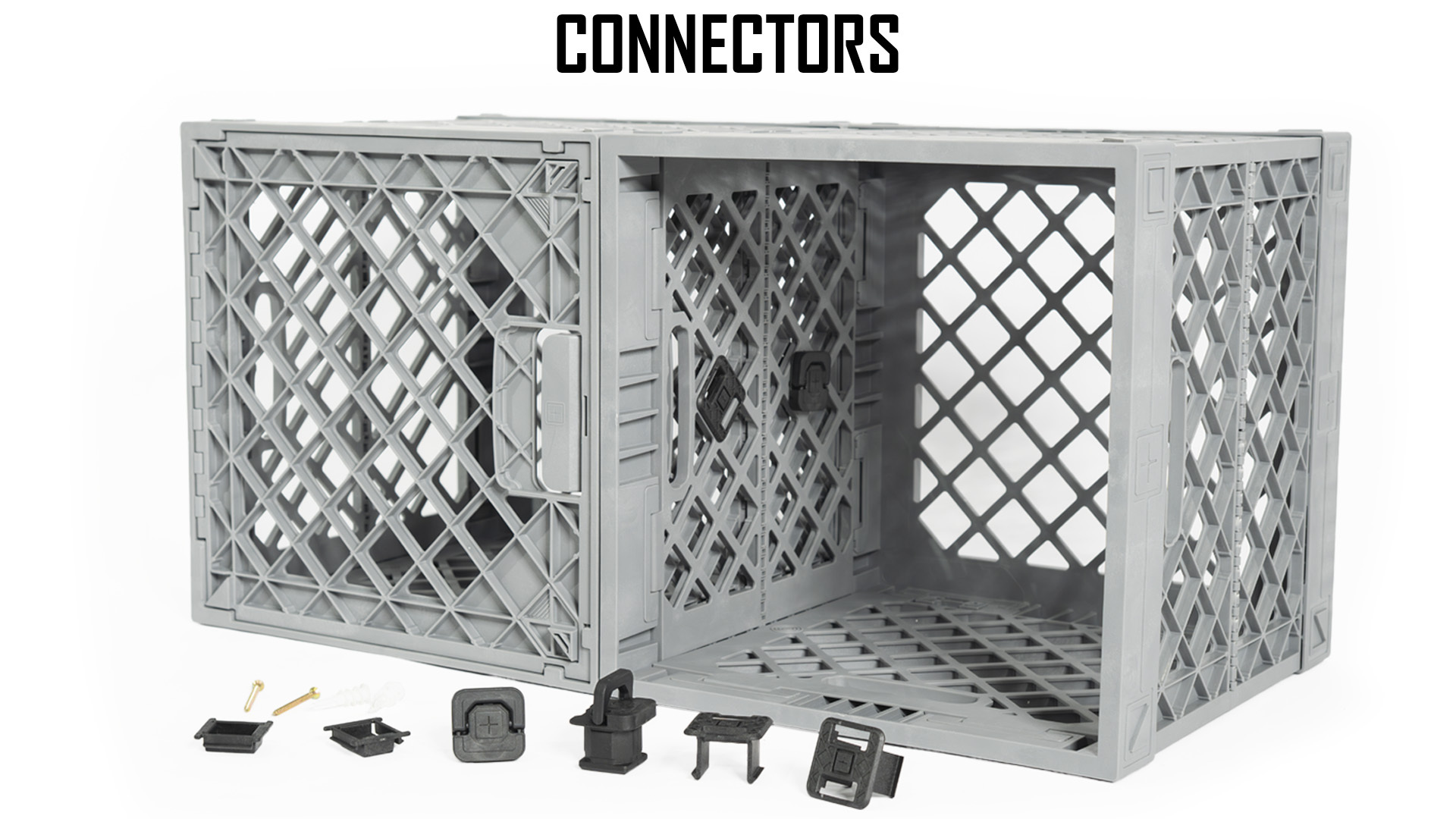 Use the Snap-Fit or D-Ring Connectors to securely join Crates for larger, more stable builds.