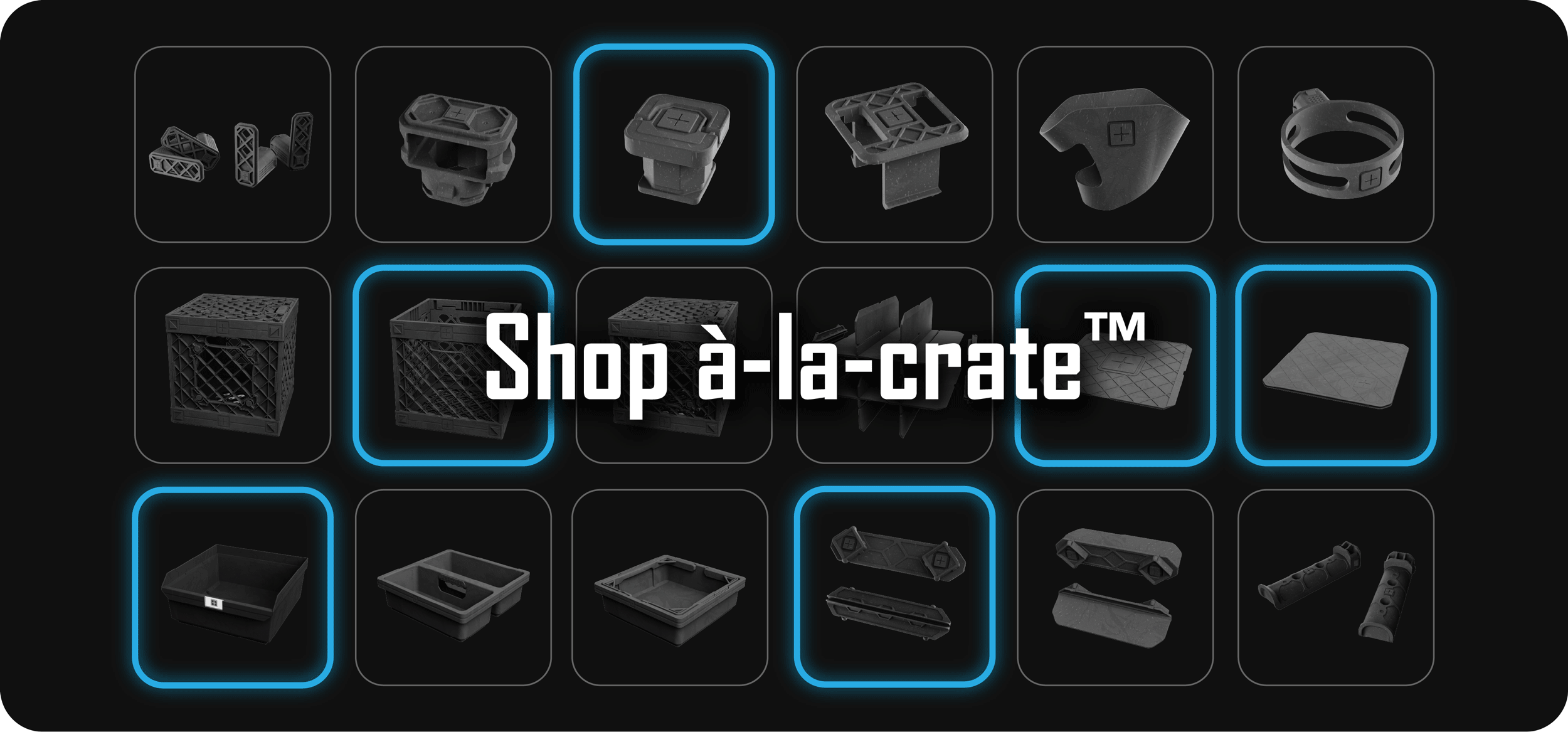 Customize your crate with MOD Panels and accessories for style, protection, and function — swap colors, add features, and make every build your own.