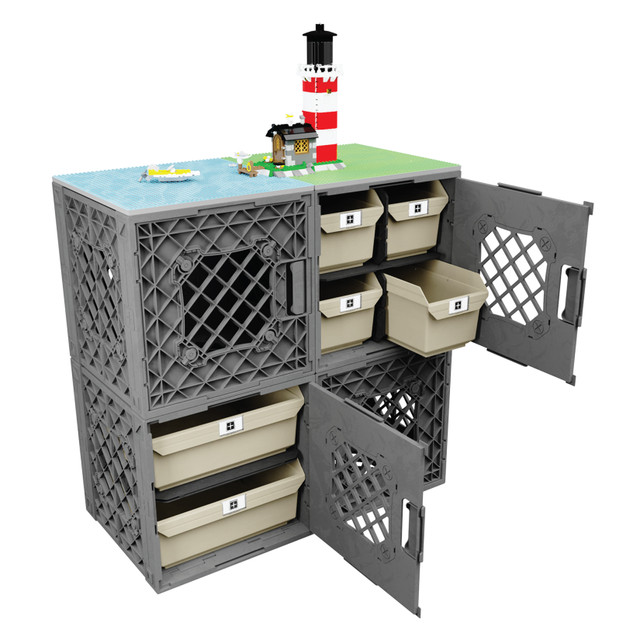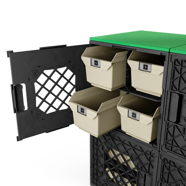 Play: Two CratePlay™ Build Plates snap onto the crates to create a generous dual-surface play zone — ideal for side-by-side builds, shared creativity, or mega projects. Each plate features a 43x43 stud grid compatible with LEGO® bricks for seamless building action.