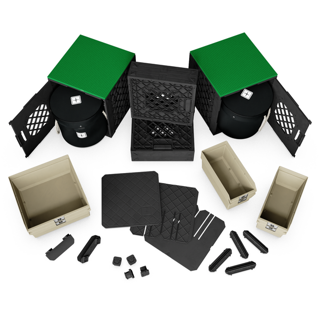 Display: From modular towers to stacked showcases, this kit lets you turn crates into display platforms that grow with your imagination. No monolithic, bulky tables required.