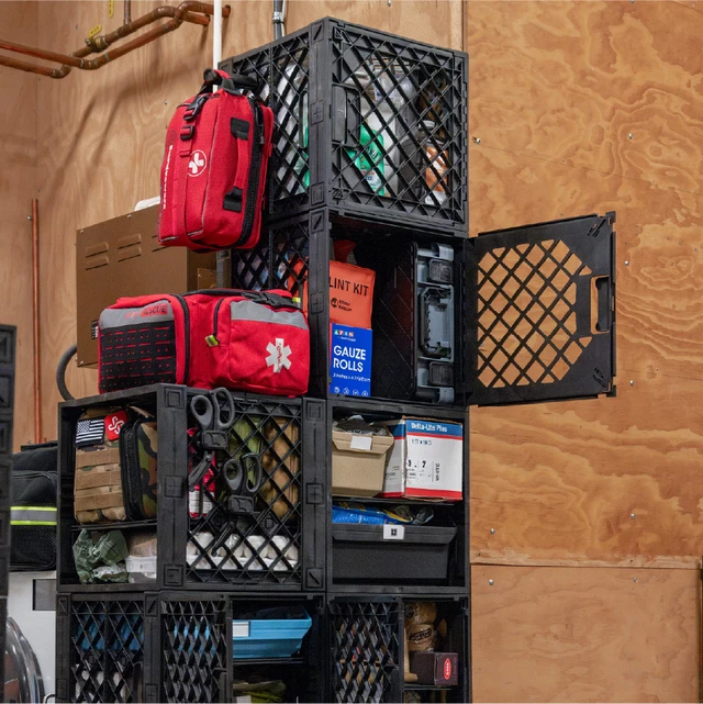 Store & Organize: Use the Outfitter Kits, CrateShelf™ Kits, and open crate space to organize food, tools, and emergency supplies across multiple tiers. Mylar Bags support long-term storage, while lidless crates provide quick-access compartments.