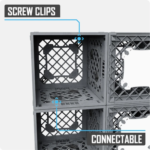 Modular System: Snap-Fit Connectors lock your configuration together, while Screw Clips allow for wall anchoring when needed. Fully compatible with the UbeCube™ ecosystem, the CratePlan Kit expands and evolves with your preparedness system.