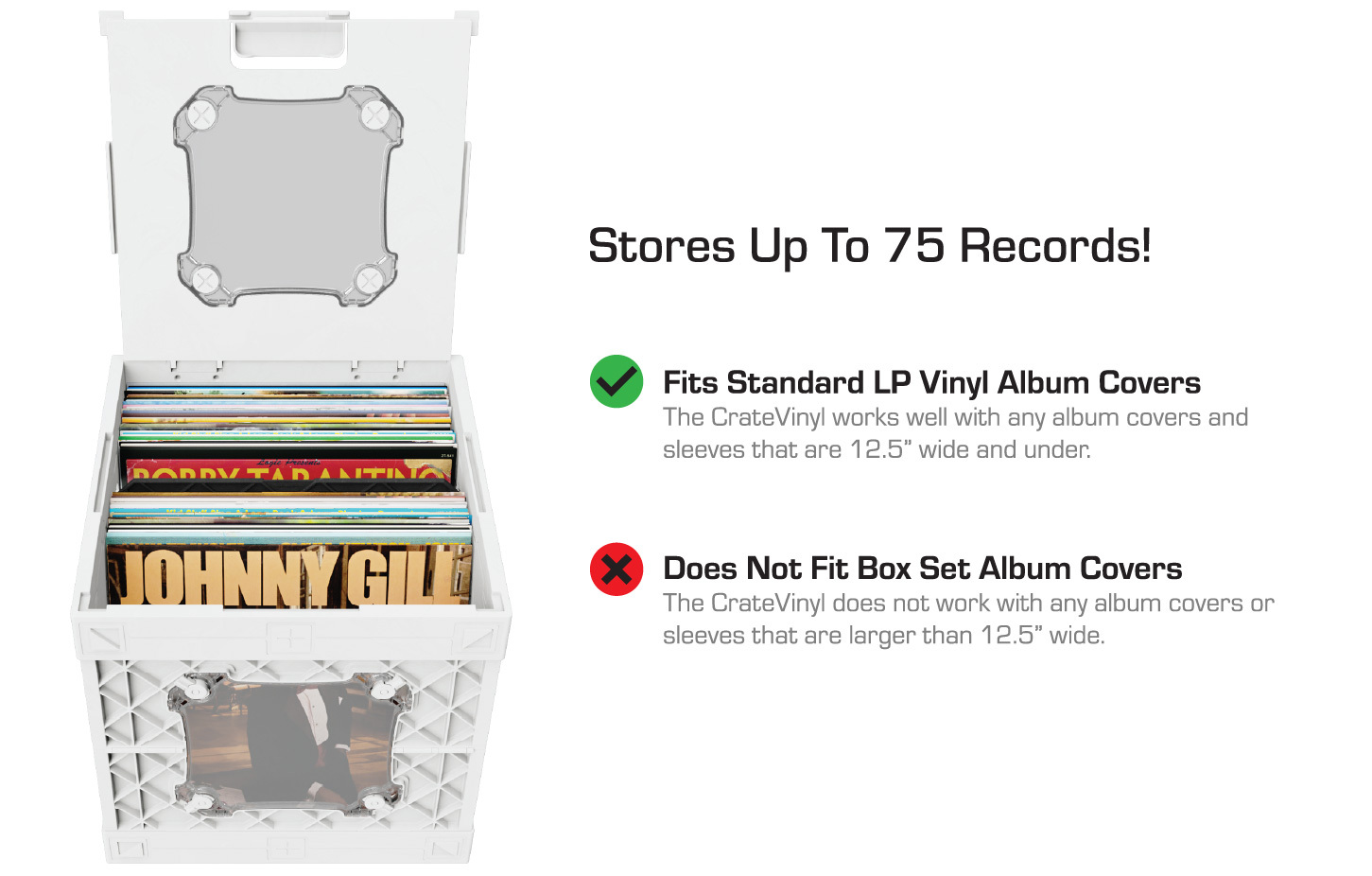 Perfect for Vinyl: Holds up to 75 standard 12" records per crate with a perfectly sized interior. The hinged lid makes it easy to flip through your collection, while the built-in divider supports vertical storage to help prevent warping.