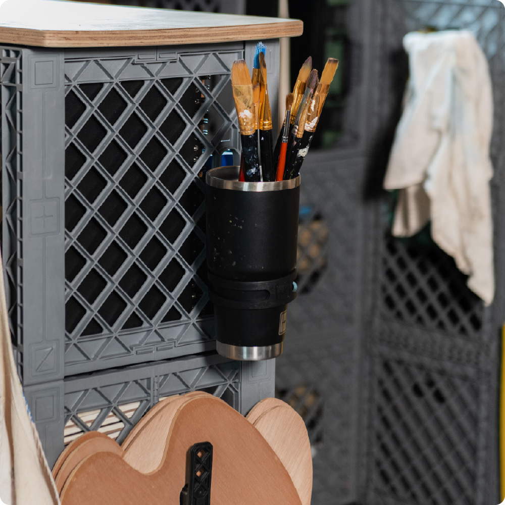 The UbeCube™ Cup Holder keeps your drinks or tools handy while keeping your workspace organized.