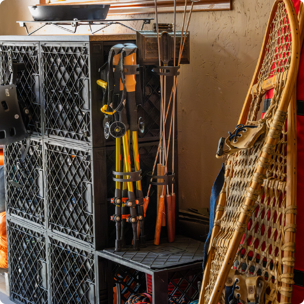 Versatile Storage. Holds anything from cups and tumblers to poles or rakes, keeping them stowed away within easy reach.