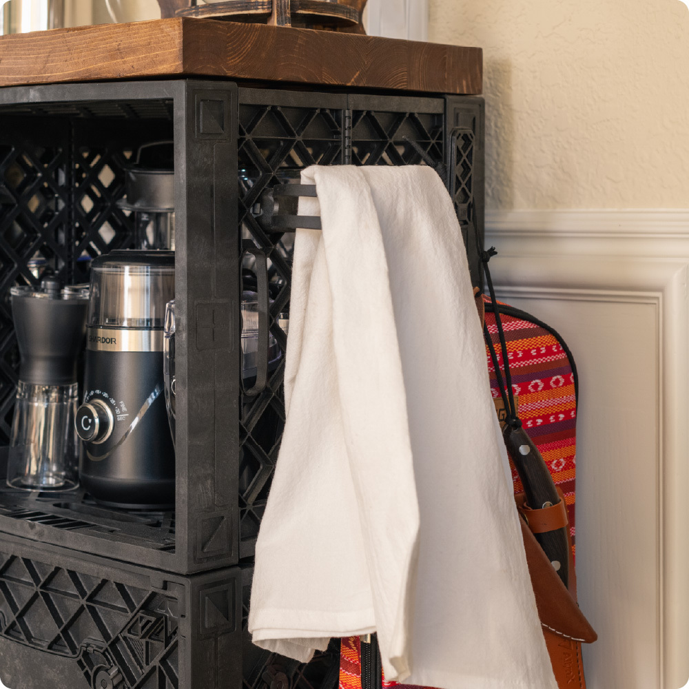 Use the Cup Holder to hang towels and similar items right on your setup.