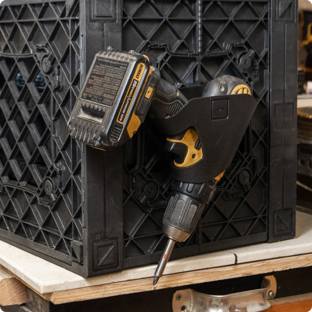 Tool Storage: Keep your drill or impact driver easily accessible by hanging it from the side of your UbeCube™ crate.