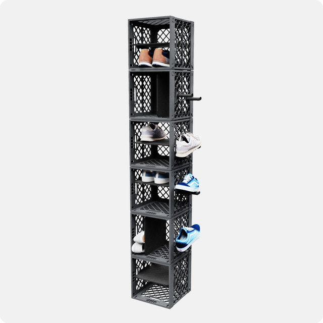 Crate-Integrated Shelving: Use CrateShelf™ Kits to split each crate into clean compartments for sneakers, folded clothes, or daily essentials. Mix shelf heights to fit high-tops, slides, and everything in between.