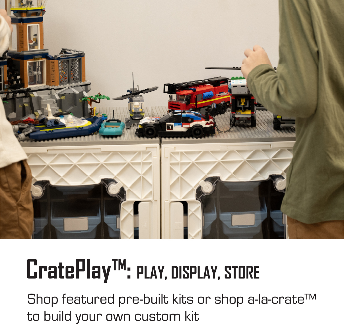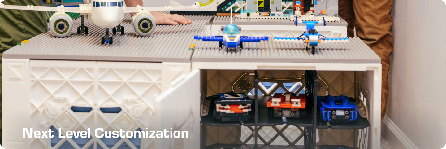 Start with crates as your foundation, add toppers for a build-ready surface, then UpCrate™ with bins, dividers, and accessories — ready to expand as your collection grows.