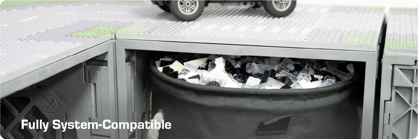 CratePlay™ transforms the UbeCube™ crate into the ultimate building station for LEGO® bricks and creative play — fully modular, expandable, and part of the UC ecosystem.