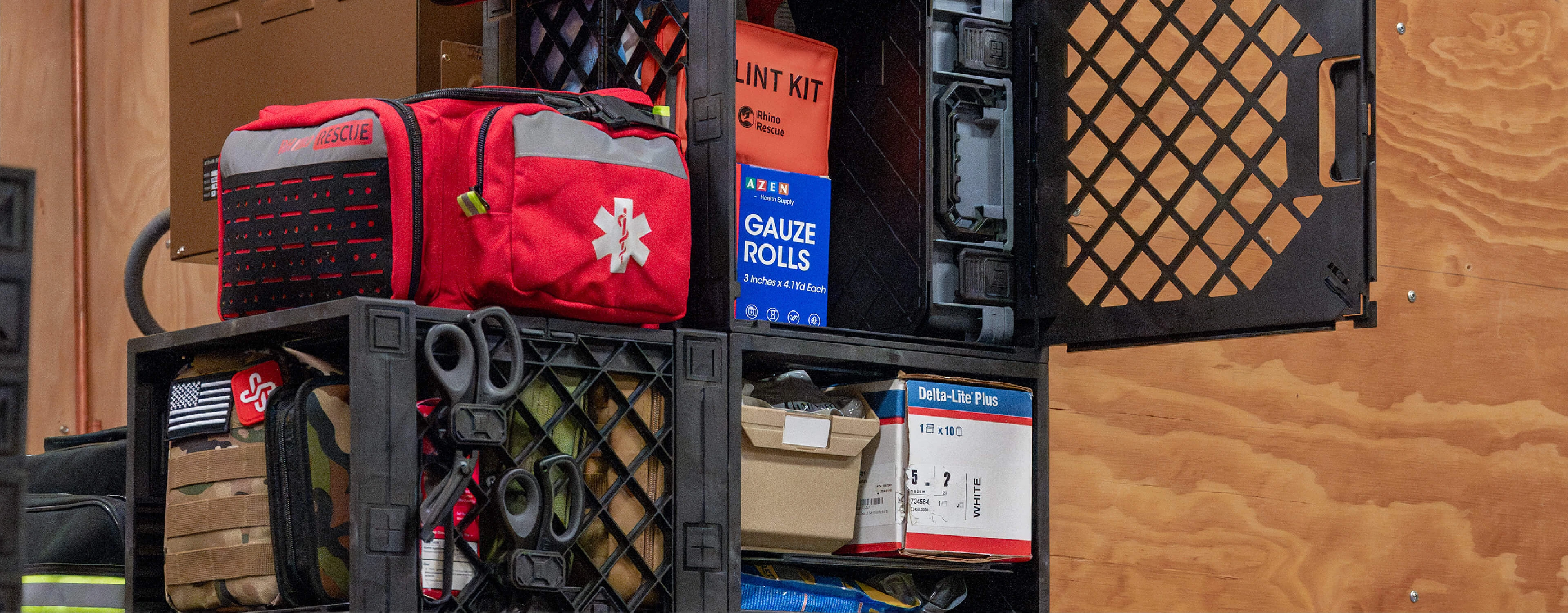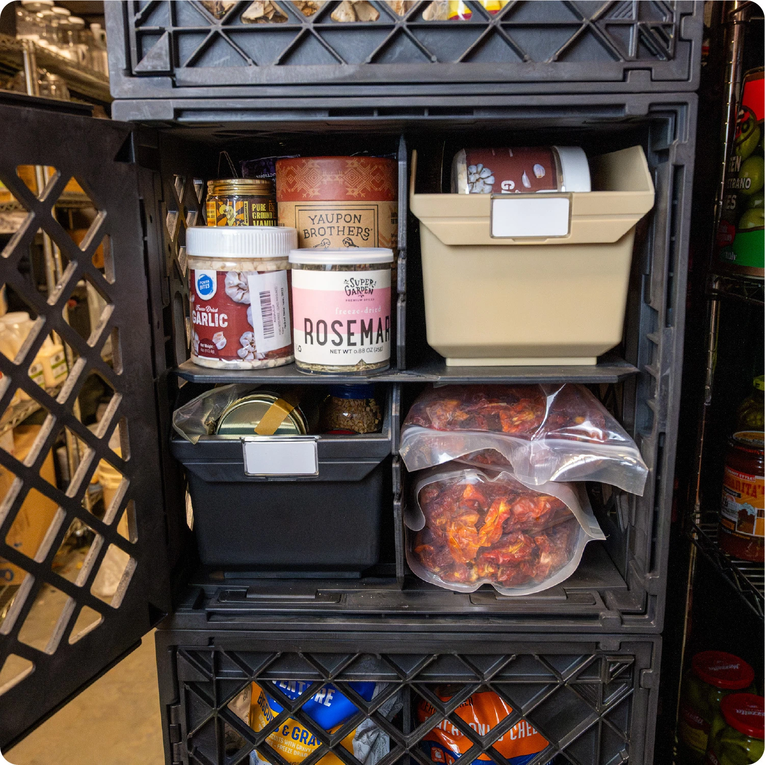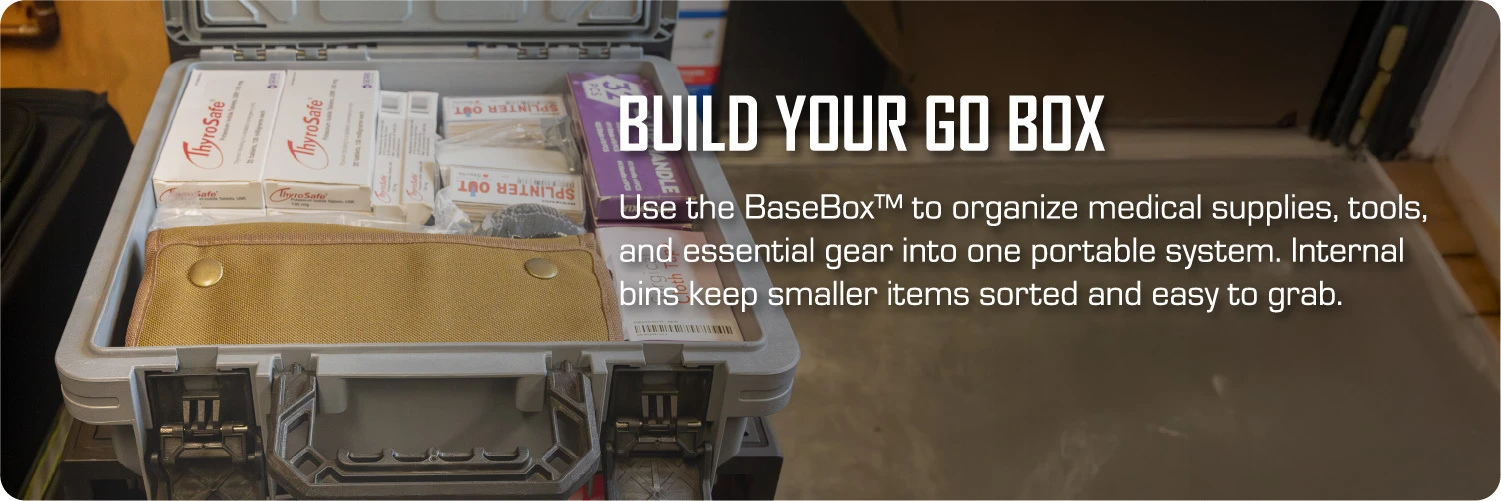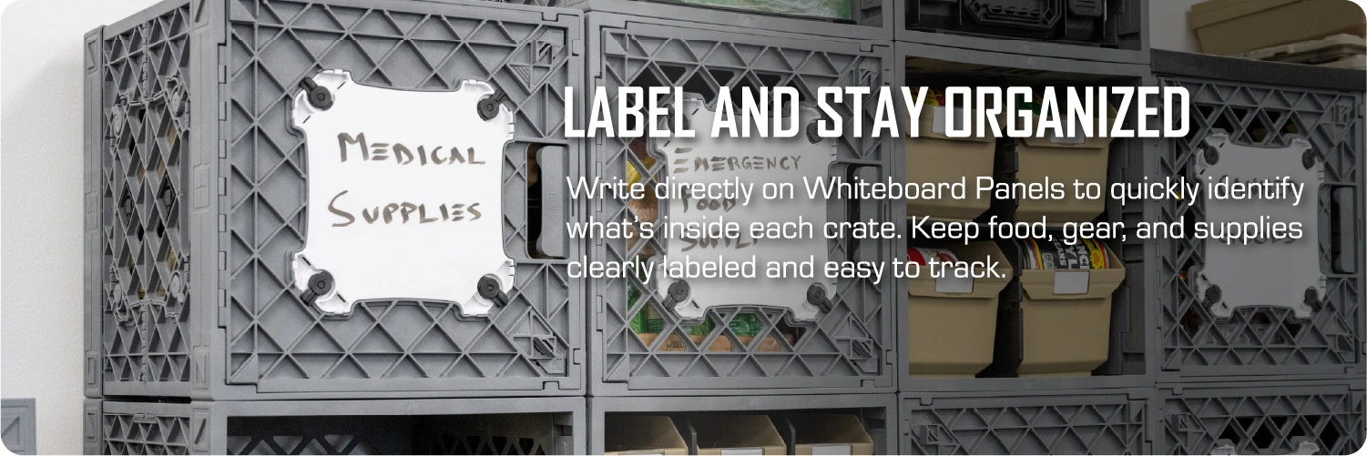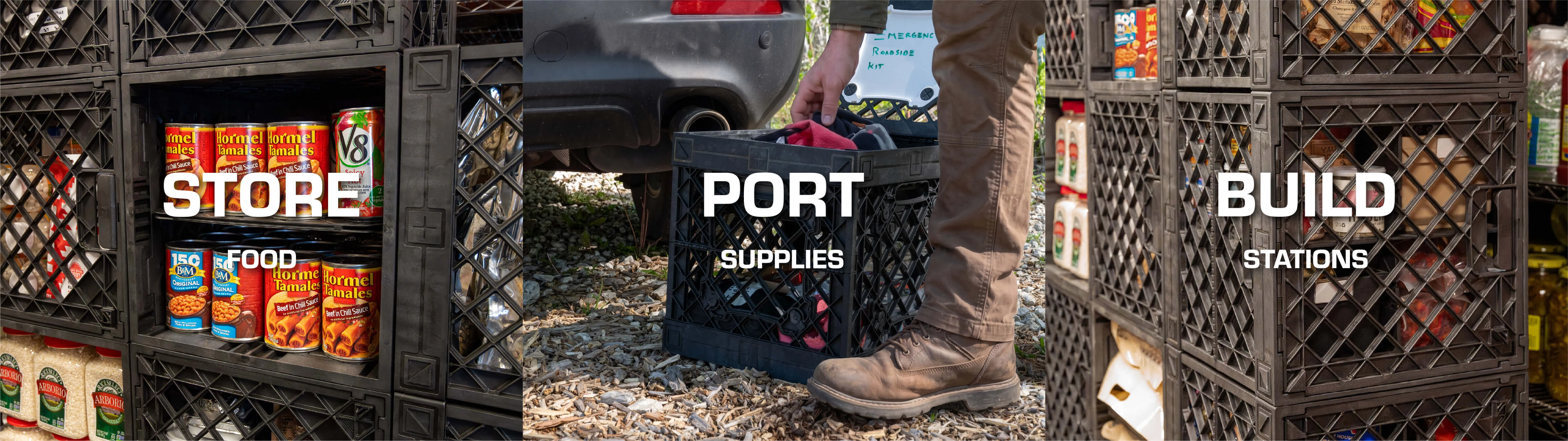 Group your essentials, load your crates, and organize supplies with bins and dividers. Stack and connect your setup to keep everything accessible and ready at a moment’s notice. Expand over time and UpCrate™ into a fully built-out prepper setup.